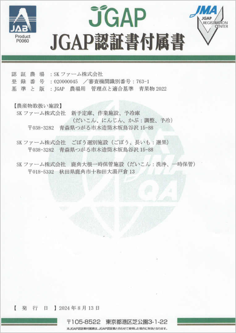 | 農場(本社) | 〒038-3282 青森県つがる市木造筒木坂鳥谷沢15-88 |