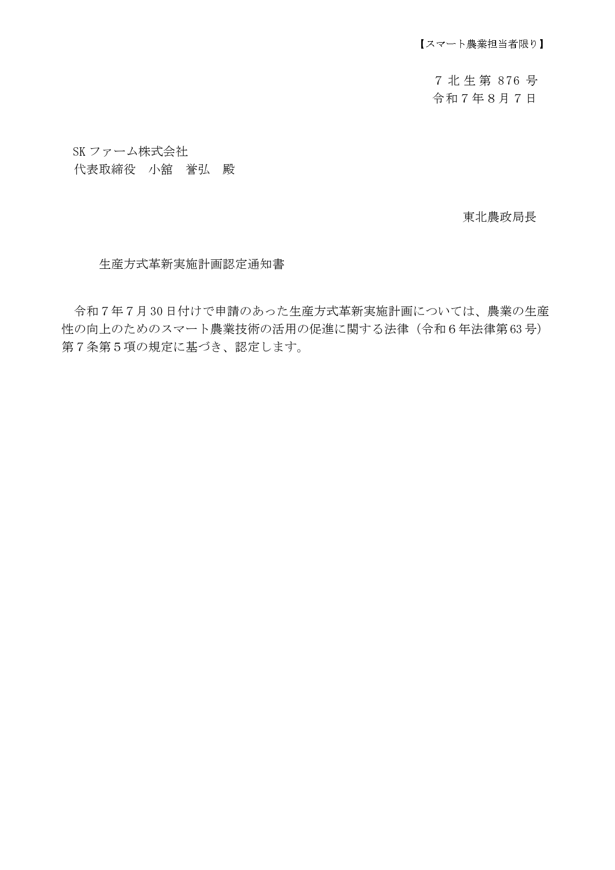 スマート農業生産方式革新実施計画