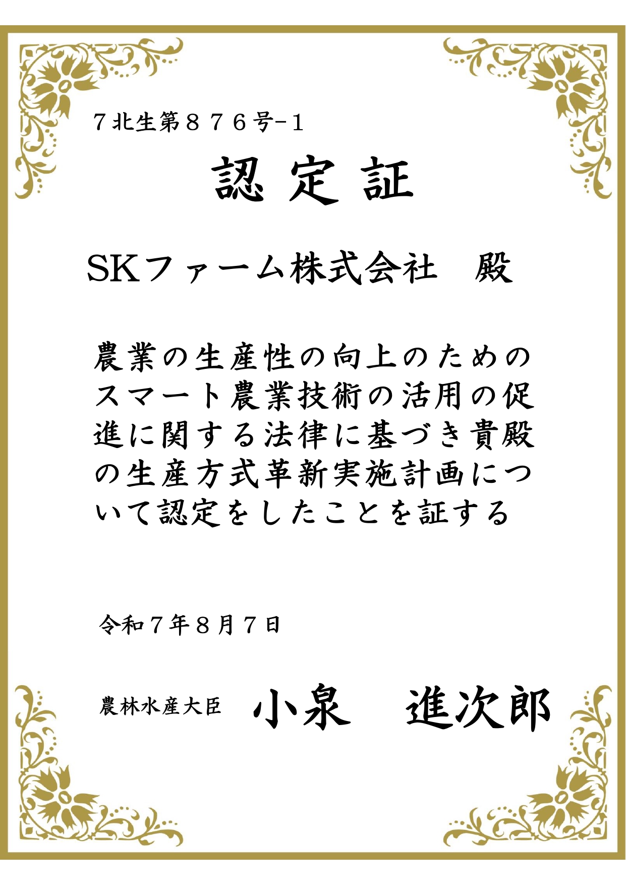 「JGAP」認証書